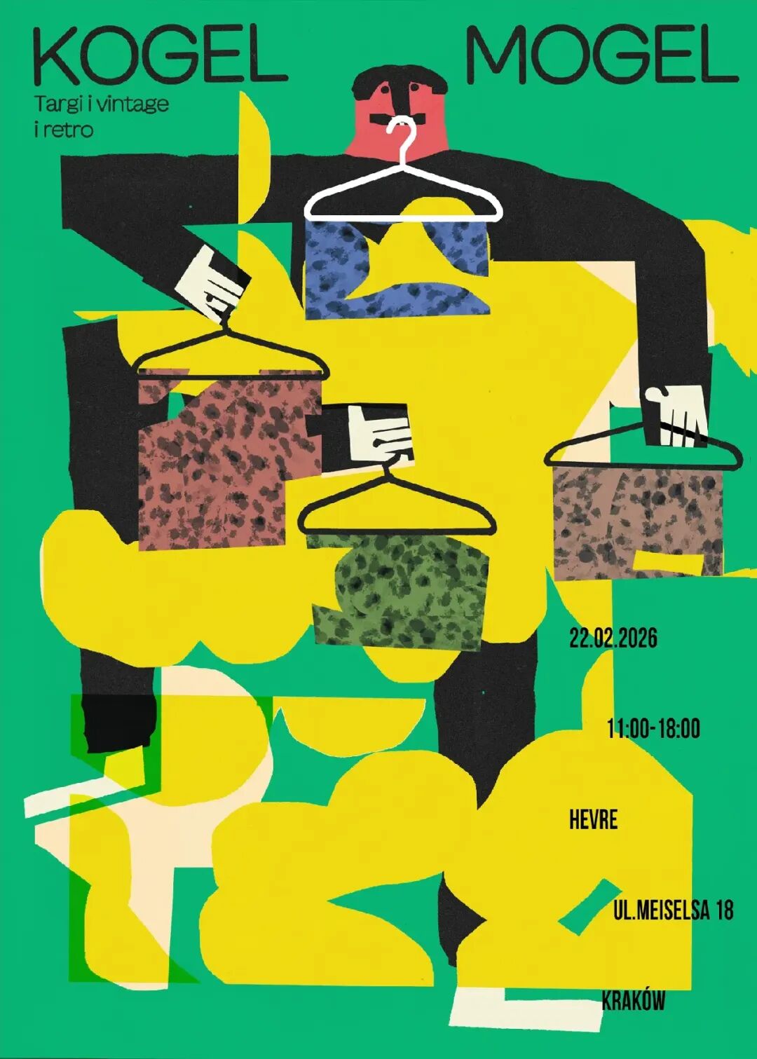 雅库布从未学过绘画,他将软件和老式图形程序视为编辑工具,仅使用其中几个功能:图层、对比度和颜色调整。正是扫描的素材赋予了雅库布作品棱角分明的几何风格——纸张和硬纸板被转化为巨大的色块和文字。“对我来说,海报是具有实用功能的;我认为它们应该被印刷出来,悬挂在公共空间、家中、办公室或车库的墙壁或门上,”雅库布说道。