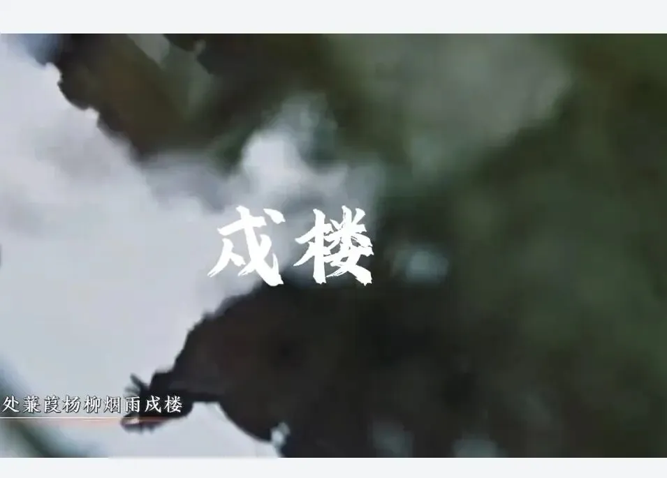 歌词在这里取“杨柳岸,晓风残月”之“杨柳”,表达离别愁绪,与“蒹葭”柔美相对,反衬“戍楼”的战争苍凉。