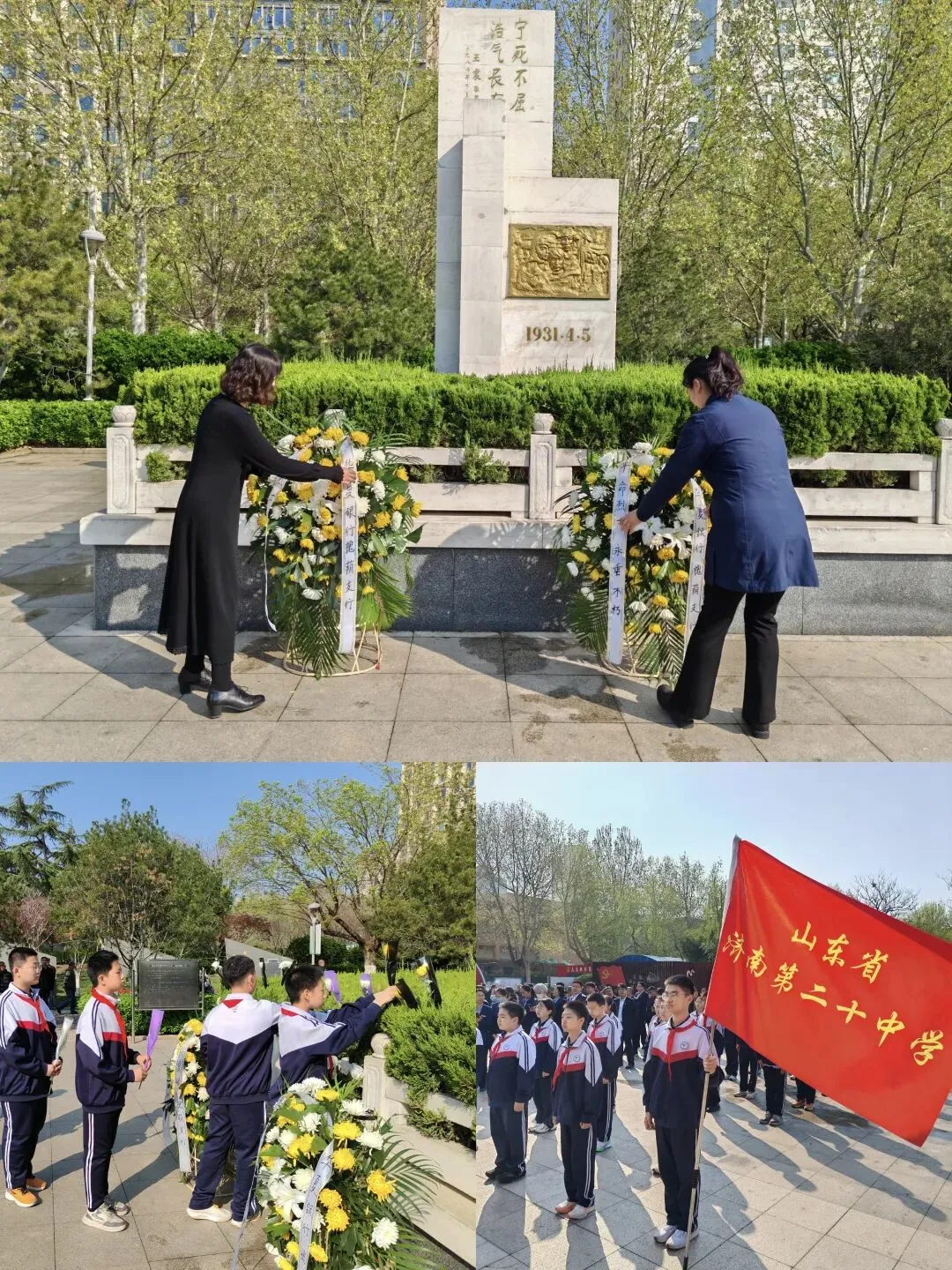 随后,济南第二十中学师生代表与各单位代表依次缓步上前,将手中的鲜花敬献于碑前,并深深鞠躬,向革命先烈致以最崇高的敬意。