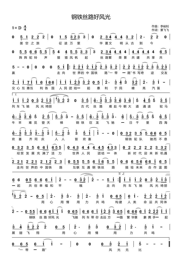 歌曲《钢铁丝路好风光》以古丝路与现代 “一带一路” 铁路发展为脉络,串联起张骞凿空的古丝路驼铃,与如今驰骋世界的 “钢铁巨龙”,对比古今丝路的发展变迁,既回望了古丝路的繁荣交融,更展现了中国铁路走出国门,落地中老铁路、雅万高铁等国际项目的辉煌成就,歌颂中国铁路在 “一带一路” 建设中的担当,描绘出各国人民因铁路互联互通而携手同心、共创幸福和平的美好图景,也致敬了所有为丝路建设拼搏的劳动者,传递出构建人类命运共同体的美好期许。