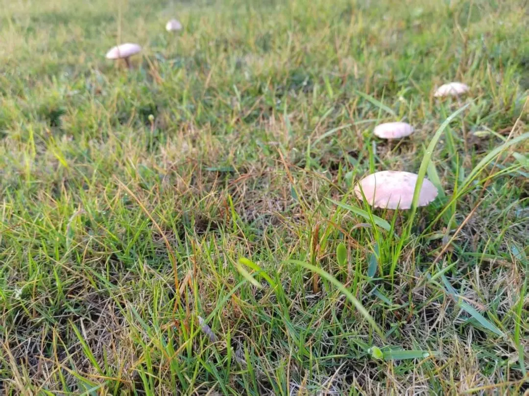 那些匍匐在地的野草,蒙着一层露珠,朦胧又神秘。而春雨之后的野蘑菇,更像一群调皮的孩子,争先恐后地顶开“小伞”,饱满又可爱。我在操场上溜了一圈,更意外发现了一大片地衣——绿莹莹的、一团团的,那可是我儿时常寻的美味,瞬间勾起了满满的回忆。