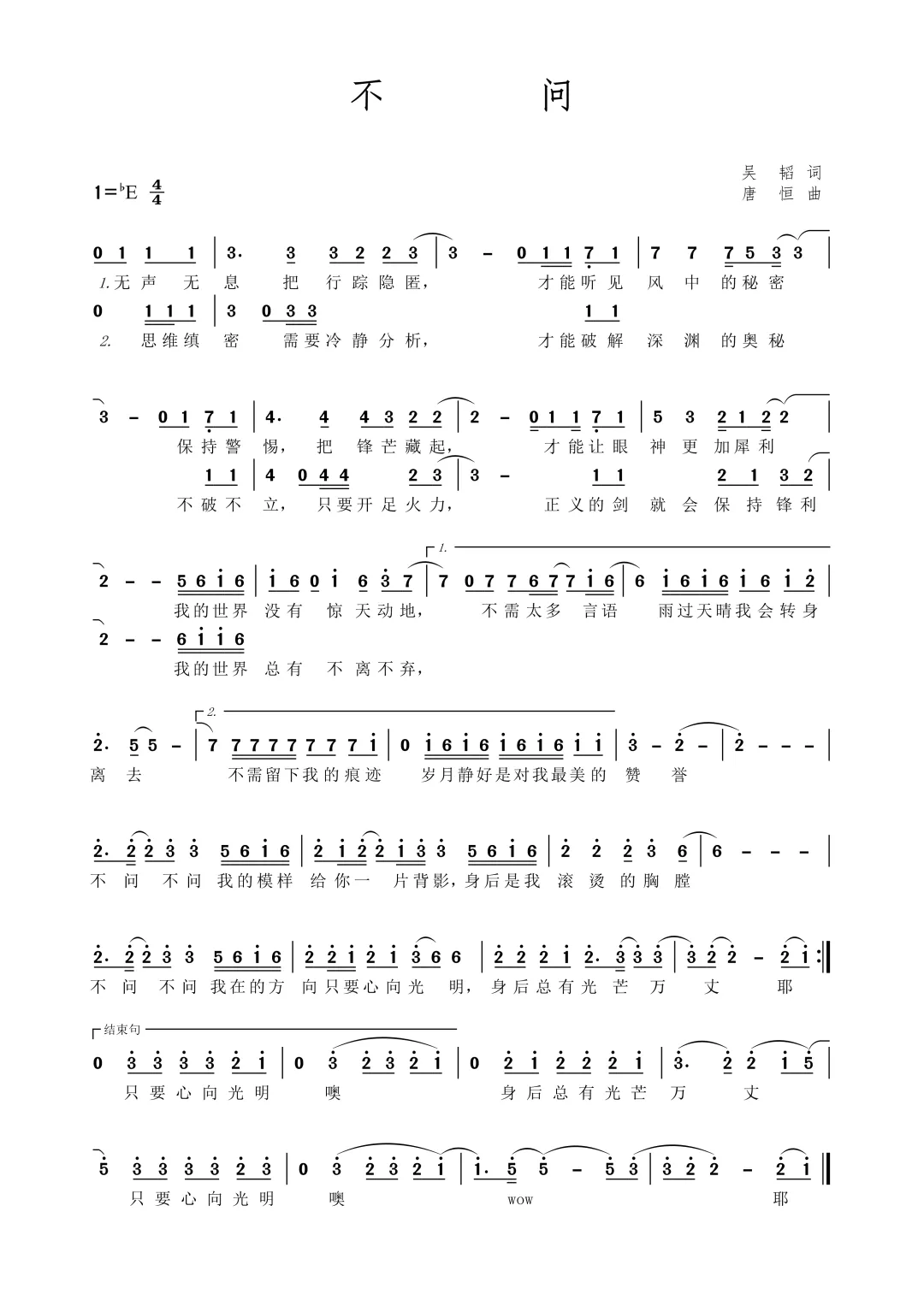《不问》的旋律
