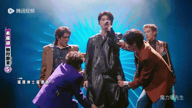 尤其是曹杨撕衣服那段简直可以用“魔幻”二字形容。只见曹杨被四人围住,边唱边将其黑色长皮外套撕下,露出粉红毛衣;