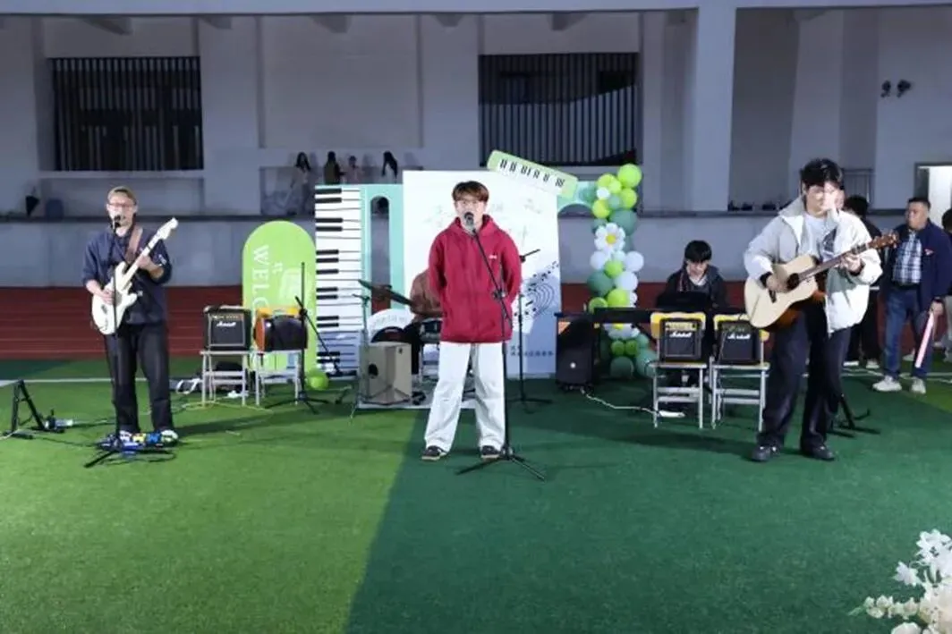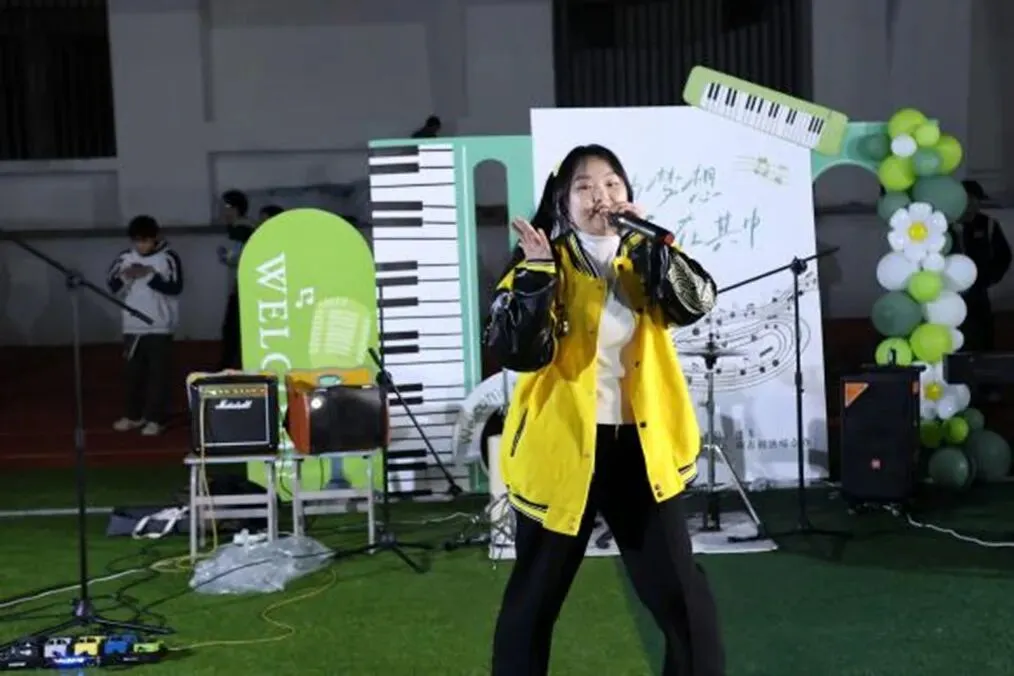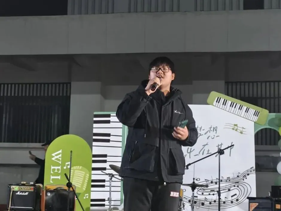 《水手》熟悉的旋律响起,“他说风雨中这点痛算什么” 的歌词铿锵有力,用饱含力量的嗓音,向在场学子传递着直面困难、勇敢追梦的人生态度,台下师生自发跟着合唱,歌声交织成一片温暖而坚定的海洋,将现场氛围推向新的高潮。