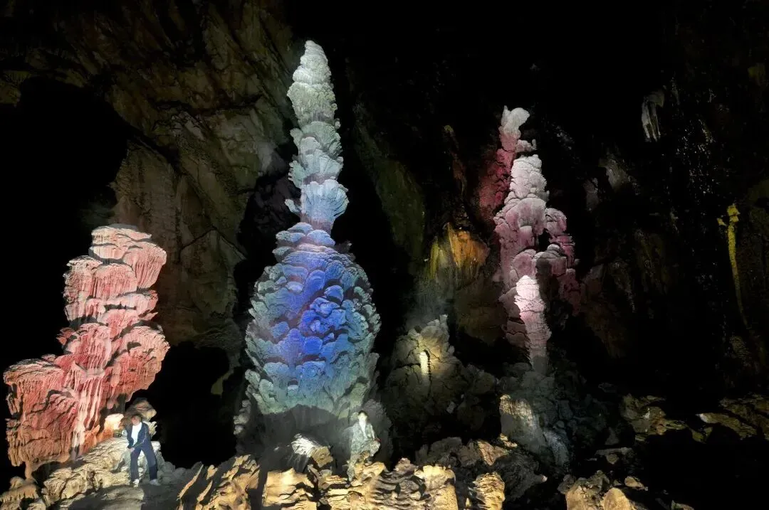 喀斯特溶洞奇观,钟乳石千姿百态,如皇宫般梦幻,洞内13处景点各有韵味,探秘地下世界,感受大自然的鬼斧神工 。