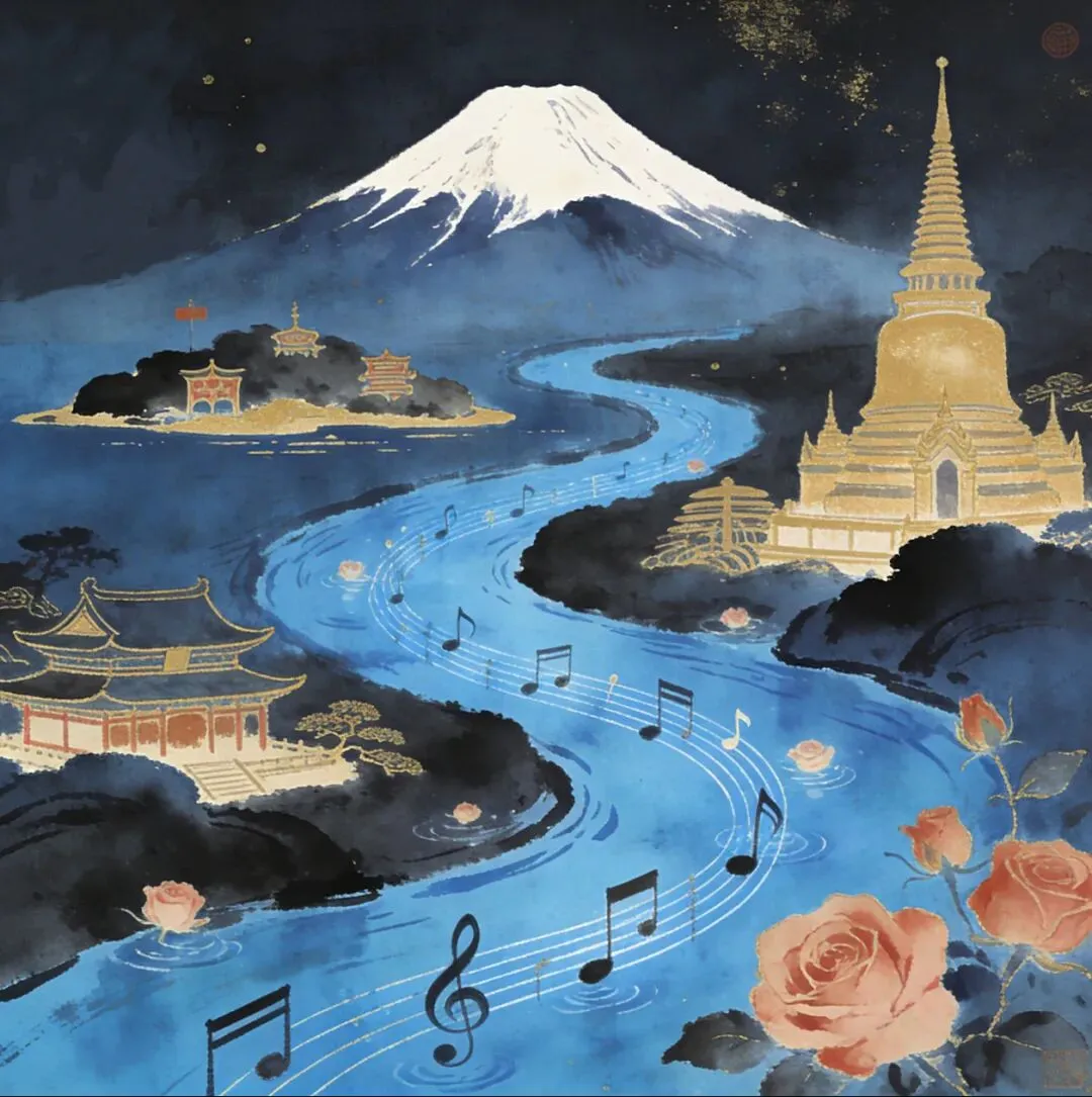 日本演歌常用的都节音阶(包含两个小二度的五声音阶),带有天然的内敛、哀愁色彩。这个音阶被闽南语和泰语老歌大量吸收,成为它们的“情感底色”。你听到的那种“苦情味”,很大程度上就来自这个音阶。