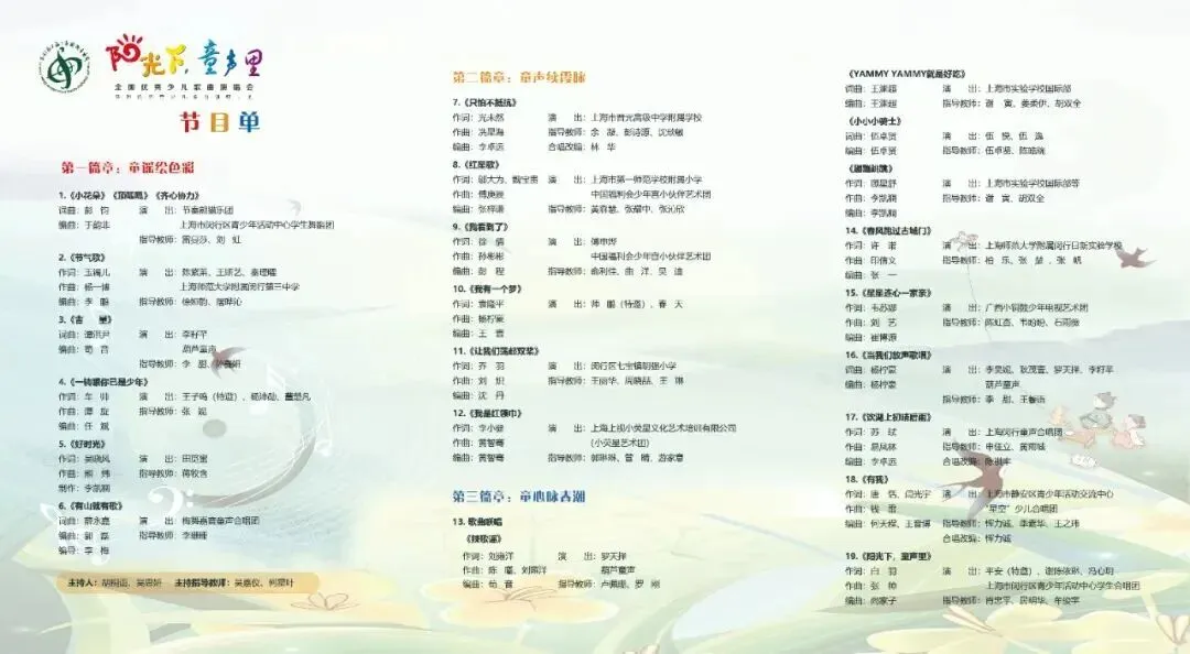 4月5日14:00,由中国音协、上海市文联、闵行区委宣传部联合主办的“阳光下,童声里”全国优秀少儿歌曲演唱会,将在上海市闵行区大零号湾文化艺术中心上演。