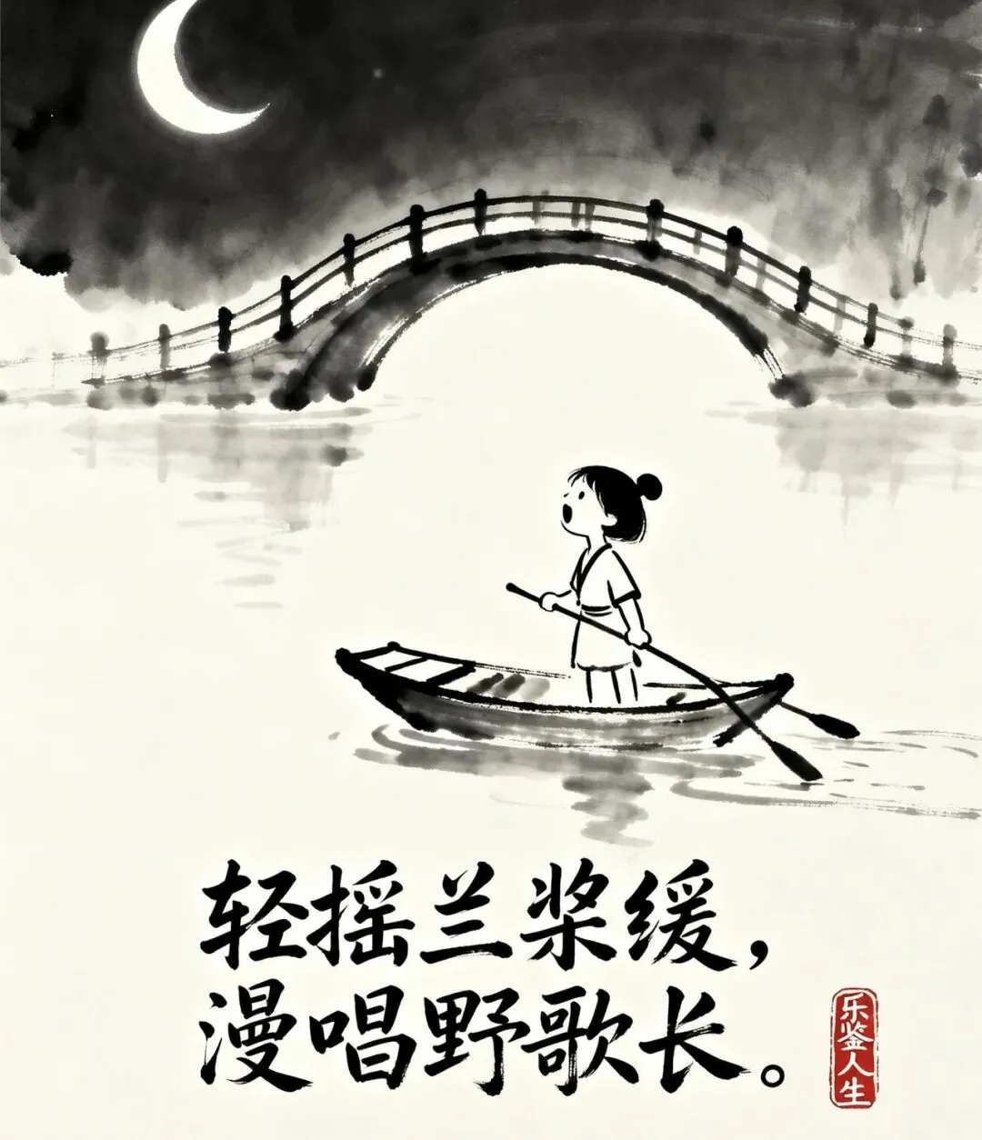 遥远的夜空,挂着弯弯的月亮,连风都慢了半拍,带着河底水草的湿气,裹着月光漫过石板桥。