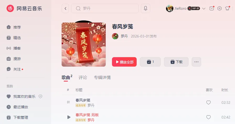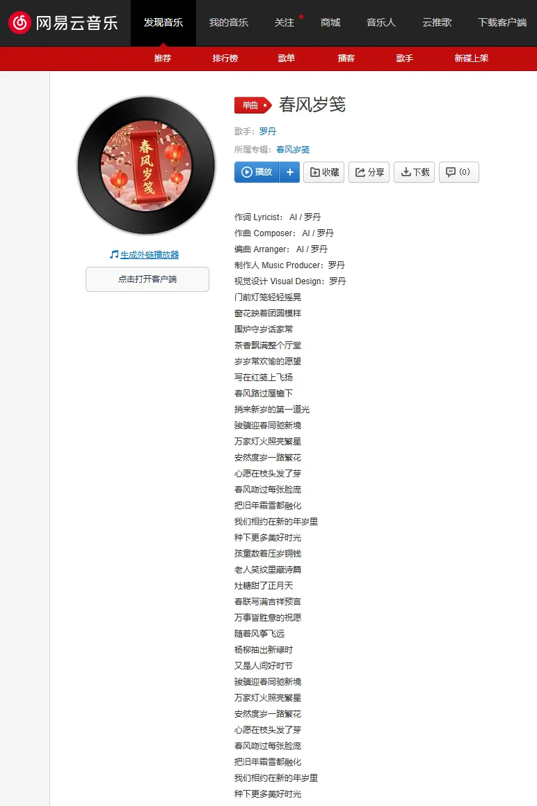 2026.3.1成功入驻“网易云音乐”成为AI音乐人、歌手啦!