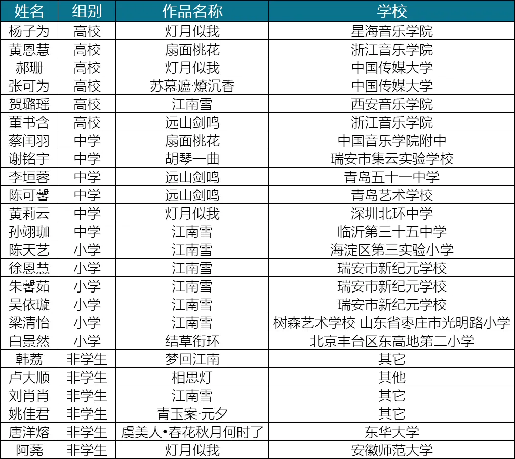 注:名单公示信息均以参赛者提交的赛事页面信息为准。
