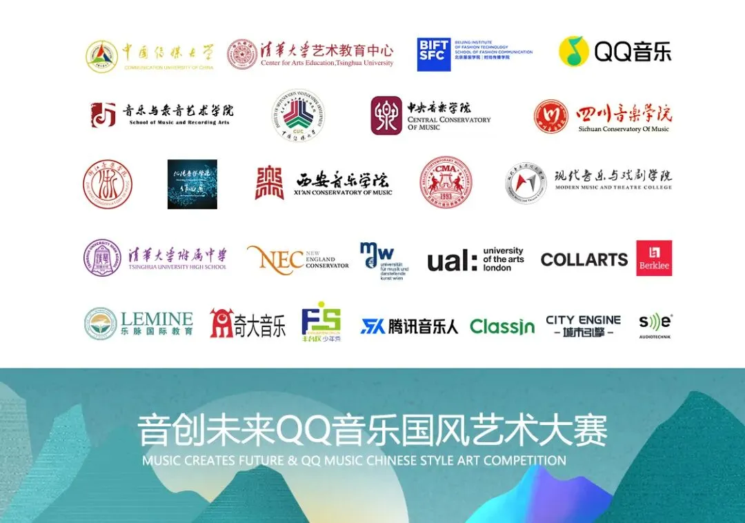 音创未来QQ音乐国风艺术大赛是由中国传媒大学率先发起,联合清华大学、北京服装学院、QQ音乐共同主办,携手中央音乐学院、四川音乐学院、浙江音乐学院、沈阳音乐学院、星海音乐学院、西安音乐学院、北京现代音乐学院、清华附中一体化学校共同协办的大型综合类国风艺术作品征集赛事。