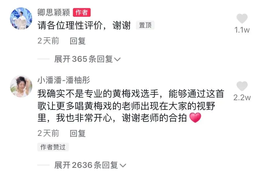 在小潘潘对卿思颖颖的回复中,她也指出自己并非专业的黄梅戏选手,把戏腔部分改编为普及性较高的流行唱法或许是她演唱技巧限制下的无奈之举。