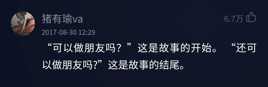 一直在想,这条评论讲的,应该就是当时我们最完美的青春模样吧,谁不希望那个从青春时期就陪伴着我们的初恋,可以一辈子走下去?