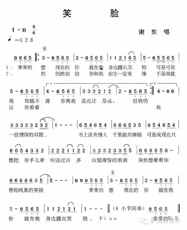 笑脸是由富钰填词,陈翔宇谱曲。谢东1993年演唱单曲《笑脸》而走红歌坛。人人都需要微笑,没有人比一个忘记微笑的人对它更为需要。应该笑口长开,因为我们无论是奉献还是索要,最好的礼品还是微笑。 |