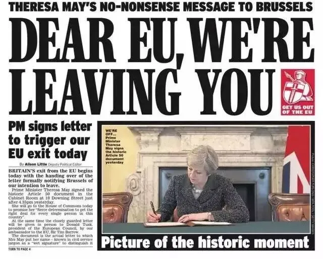 3月29日,英国首相特雷莎·梅在写给欧盟的“分手信”上签下了名字,英国将正式开启“脱欧”进程。
