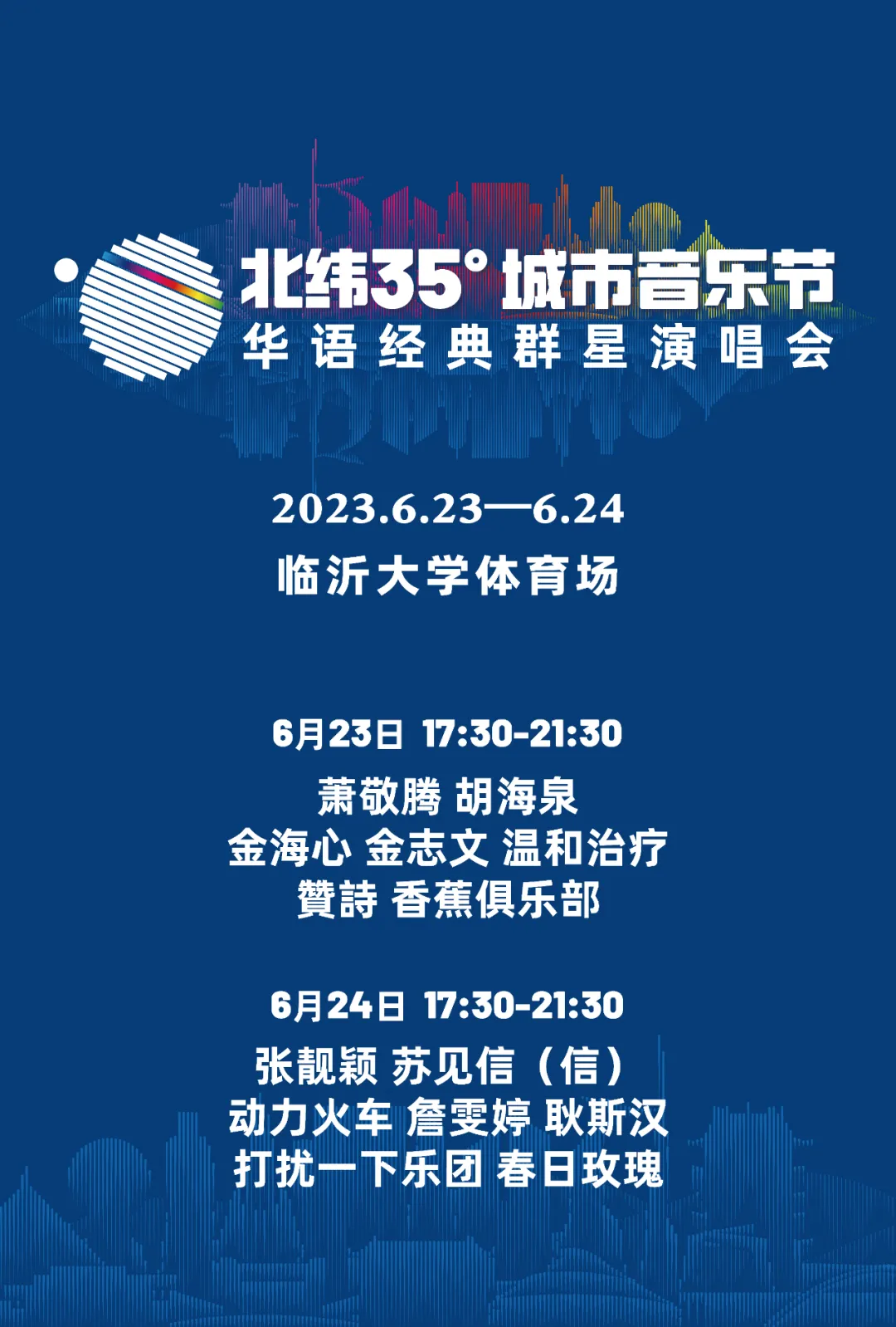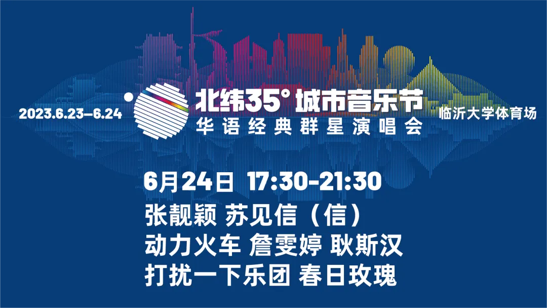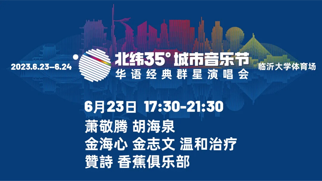 “北纬35°城市音乐节——华语经典群星演唱会”是临沂文旅集团2023年打造的全新城市音乐节与演唱会双结合的独特音乐品牌,活动特邀国内顶流明星,实力唱将,融合多元音乐元素呈现的夏日音乐盛会。