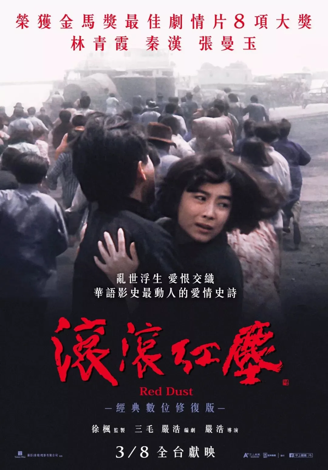 现实比她预料得更加辉煌荣耀:《滚滚红尘》在1990年的金马奖上,斩获包括最佳影片、最佳导演、最佳女主角、最佳女配角、最佳摄影等八项大奖,至今,仍是保持着金马奖的纪录。
