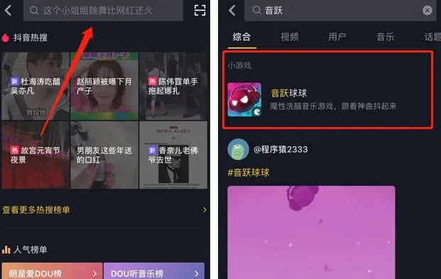 差友们现在可以在 APP 里搜索关键词 “ 音跃 ” ,找到小程序游戏的入口。