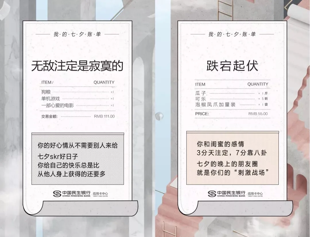 这个七夕,民生信用卡正是发现了这一个容易被常人忽略的细小洞察:
