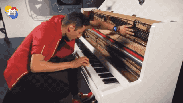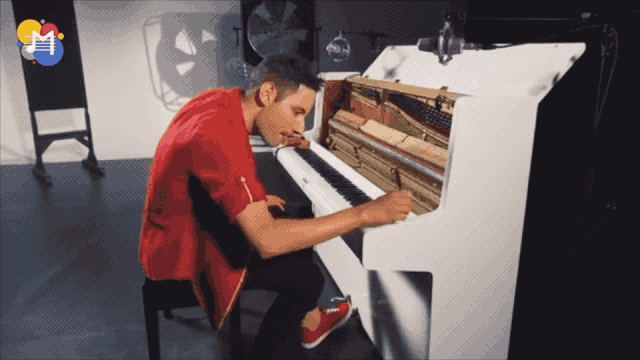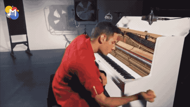 然后他拍打钢琴侧板制造出类似底鼓的重音;