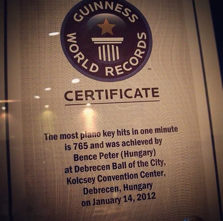 2012年1月,他以一分钟敲击钢琴琴键765次获得“一分钟内敲击钢琴琴键最多次”的吉尼斯世界纪录,一直保持到2017年3月。