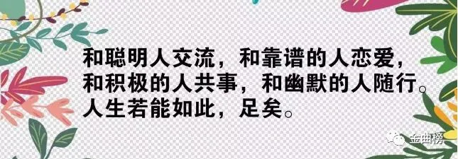 》》1、百岁光阴半归酒,一生事业略存诗。2、康生说,既为知己,当无所顾及,无所不谈,故也不用忌讳男女之身有别。男者之间因共同理想与爱好者聚之有之。高山流水之事,今日犹在流传。3、不要为成功而努力,要为做一个有价值的人而努力。4、最初不相识,最后不相认。5、人生的节奏慢下来拙一点反应慢一点把快乐也慢下来,慢乐将是人心愉悦的极致!6、我乐意实际付出行动,达成目标。7、太多不能,不如愿,想离开,离开这个让我疼痛的你。8、最想对你说:我不是爱你,而是十分爱你;我不是疼你,而是相当疼你;我不是想你,而是个性想你;我不是一会儿也离不开你,而是一辈子离不开你!9、跟自己说好,悲伤时可以哭的很狼狈,眼泪流干后,要抬起头笑得很漂亮。10、婚姻的持久靠的是两颗心,而不是双方的肉体。——绪儒斯11、成功的距离,不管距离我们有多么遥远,但每人都彼此拥有一个信念,那就是永不放弃。