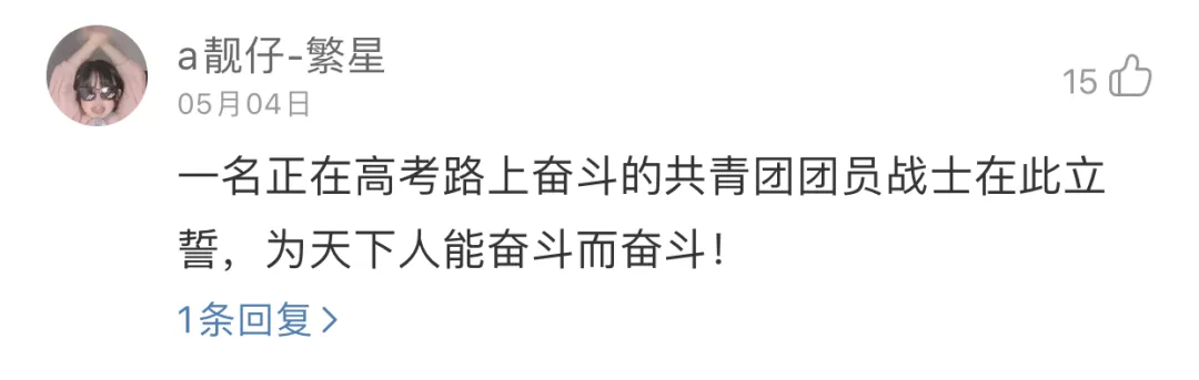 最近,有这样一首神秘歌曲,爆发式的引发了网友们的共鸣,点燃了网友们的情绪,留言翻起来让人泪目。你们不必怀念我,也不要指望我回来,我离开以后,你们就是我,人民万岁。以前不懂,甚至还会嘲讽这句话。现在过去这么久了,才发现当年的自己是多么的无知。一名正在高考路上奋斗的共青团团员战士在此立誓:为天下人能奋斗而奋斗!