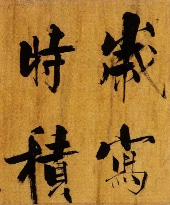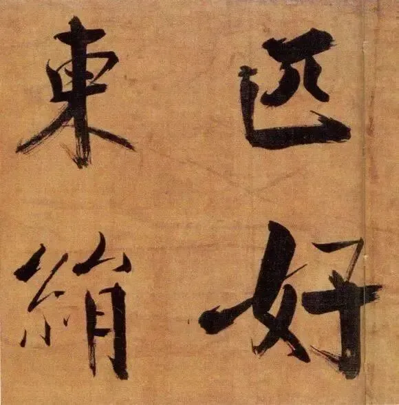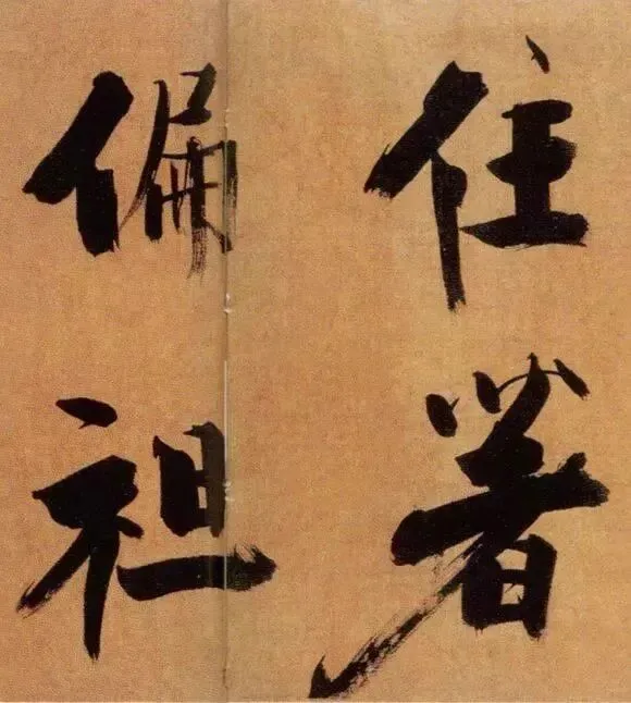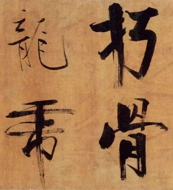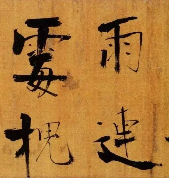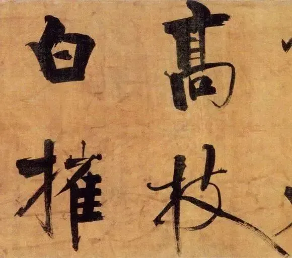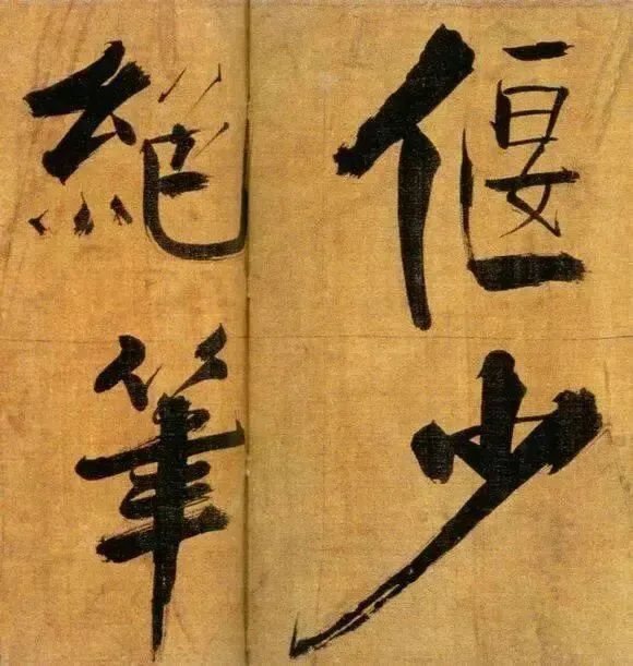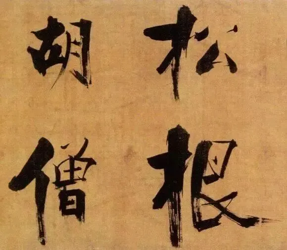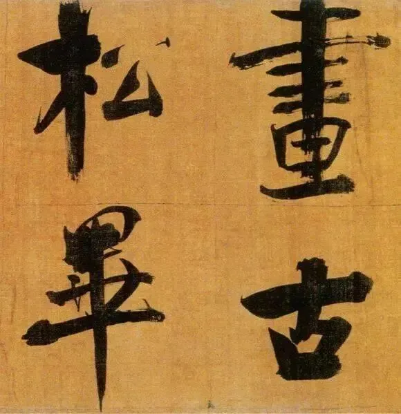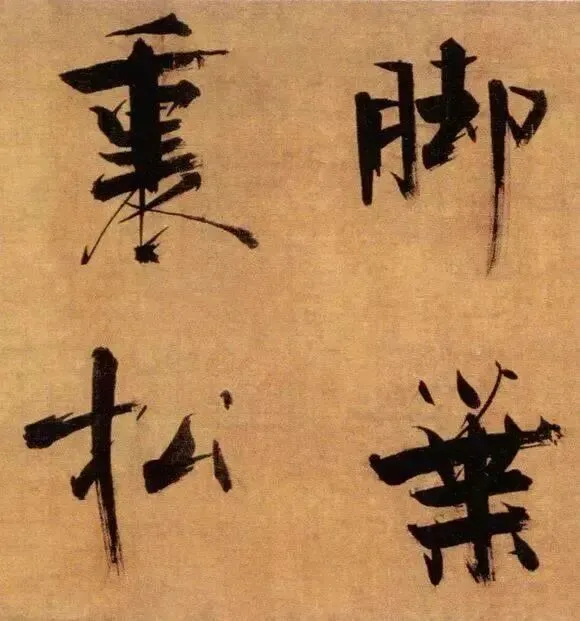 张即之以“母子笔法”颠覆常规,粗细悬殊的笔画如松枝交错,既有颜真卿的雄浑筋骨,又暗藏米芾的跌宕体势。其结体取法欧阳询的险绝,却以更夸张的欹侧姿态打破平衡,仿佛双松在暴风雨中扭曲生长,将“白摧朽骨龙虎死,黑入太阴雷雨垂”的诗意转化为视觉震撼。这种“不和谐”的张力,恰是南宋文人以笔墨对抗时代动荡的隐喻。
