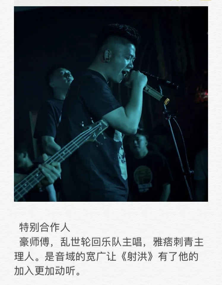 创作《射洪》的初衷:每一个射洪人都有能力去创造射洪,每个人创造射洪的方式也不一样。我们通过音乐创造了我们的“射洪”,是因为我们是射洪人,我们的成长与射洪的变化息息相关。在团队成立的时候我们一致的去认同我们该为这座城市以我们的方式去写一首《射洪》,版本前前后后用了三种不同的风格了,如今这个版本是最棒的,加了旋律进去的《射洪》会显得更加的动听。这首歌的歌词我们也更加用心了,为自己爱的城市写一首歌,让更多的射洪人去感受它,这就是我们的的初衷!